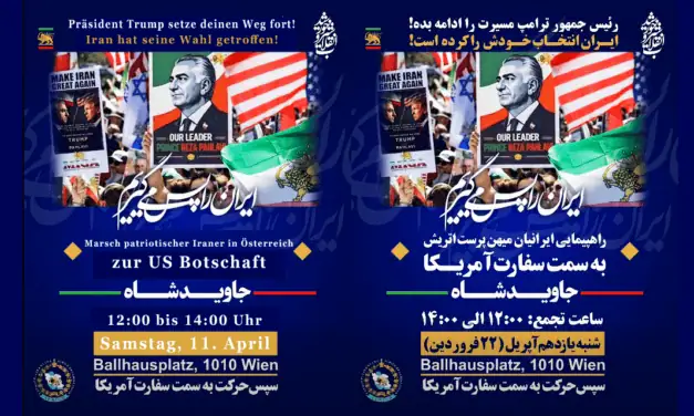 Demo: Marsch patriotischer Iraner in Österreich zur US‑Botschaft am 11. April 2026 Wir holen uns...