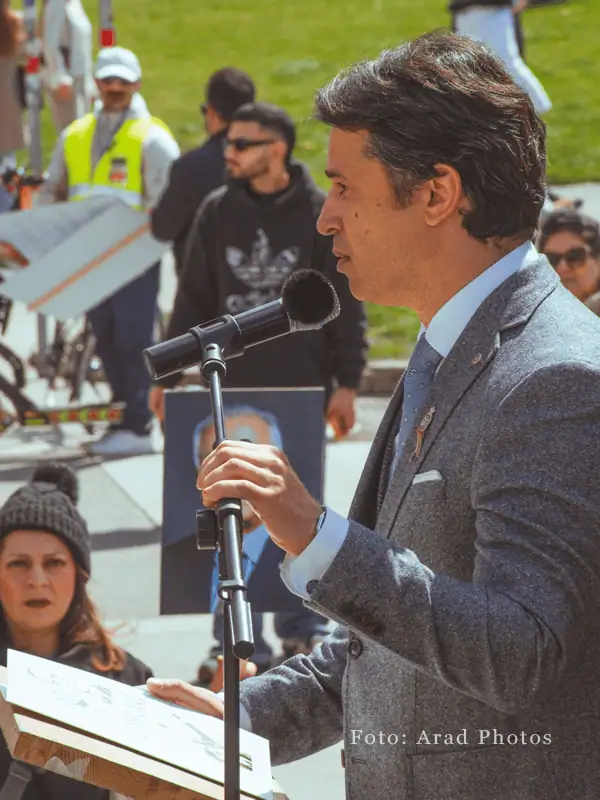 In dieser Zeit konnte Prinz Reza Pahlavi die Stimme eines großen Teils dieses Volkes vertreten. Er hat einen Plan für den Übergang und einen Fahrplan für den Wiederaufbau Irans. Aber vergessen wir nicht: Niemand kann die Rolle des Volkes übernehmen. Das Volk hat entschieden, und das Volk wird diesen Weg zu Ende führen. Dieser Tag ist nicht mehr fern — der Tag, an dem das iranische Volk ein letztes Mal auf die Straßen geht und dieses schändliche Regime für immer in die Geschichte verweist. Iran wird frei sein — nicht durch andere, sondern durch seine eigenen Kinder.